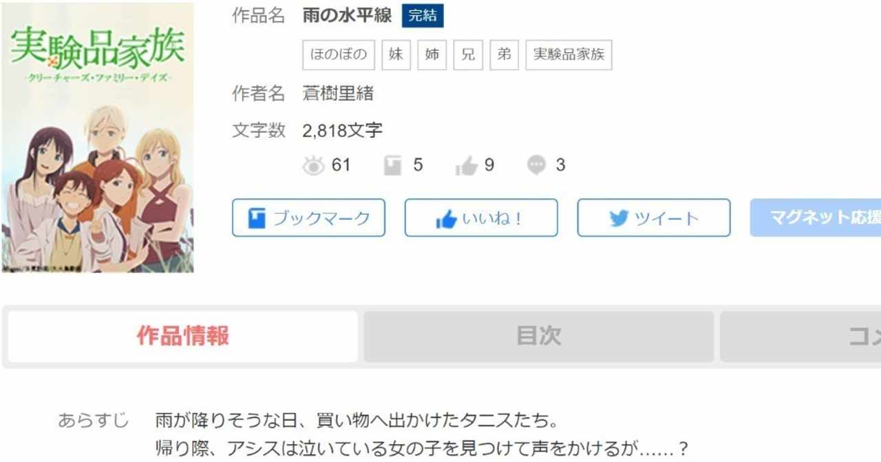 Web小説投稿サイト マグネット テレビアニメ 実験品家族 短編小説コンテスト受賞作品 Naver まとめ